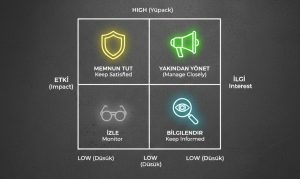 • Paydaşlar, projeye olan etkilerine ve beklentilerine göre haritalandırılmalıdır.